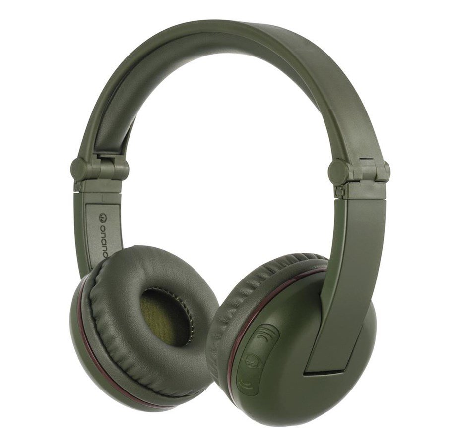 BuddyPhones Play langattomat Bluetooth-kuulokkeet on suunniteltu lapsille. Komeassa vihreässä värissä ja mukana Amazonin viidakkoon liittyviä tarroja.