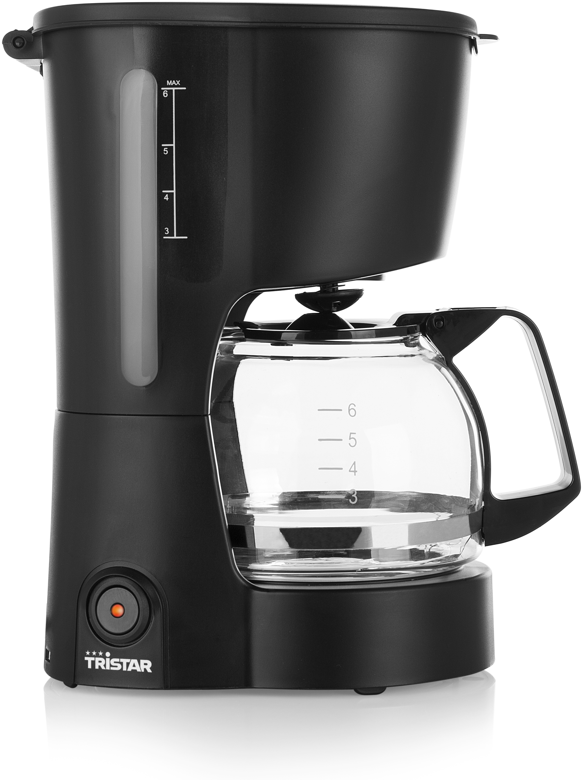 - Kompakti lasikannullinen kahvinkeitin 0.6 litran eli 6 kupin tilavuudella