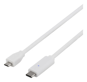 Deltaco USB-C - microUSB-kaapeli, 1 m, valkoinen. Kaapeli, jossa on USB Type C -liitin ja USB Type Micro-B -liitin.