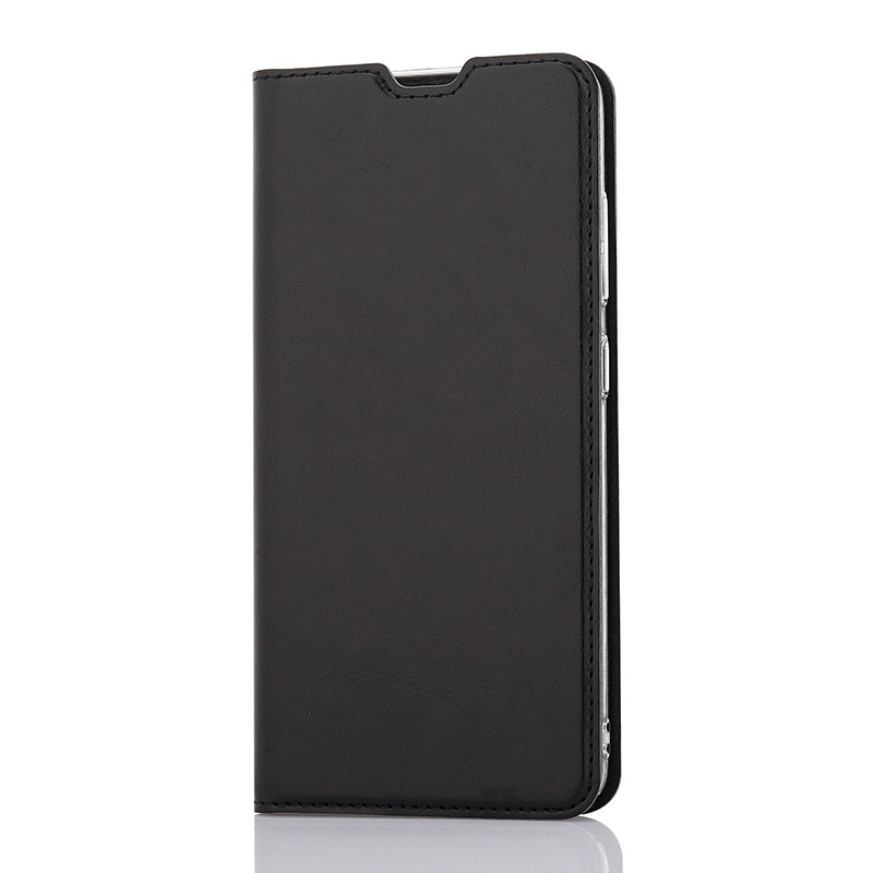 Wave Book Case musta suojakotelo Samsung Galaxy A52s 5G, Samsung Galaxy A52 5G ja Samsung Galaxy A52 -puhelimille. Magneettisulkuinen kansi, korttipaikat RFID-suojauksella ja läpinäkyvä muovikelkka (PC). Pintamateriaali laadukasta nahkaa.