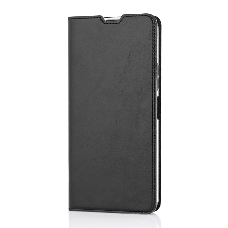 Wave Book Case musta suojakotelo Nokia 8.3 5G -puhelimelle. Magneettisulkuinen kansi, korttipaikat RFID-suojauksella ja läpinäkyvä muovikelkka (TPU). Pintamateriaali laadukasta nahkaa.