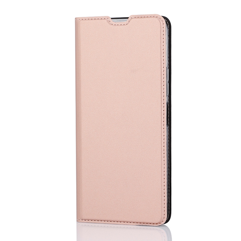Wave Book Case ruusukultainen suojakotelo Nokia 8.3 5G -puhelimelle. Magneettisulkuinen kansi, korttipaikat RFID-suojauksella ja läpinäkyvä muovikelkka (TPU). Pintamateriaali laadukasta nahkaa.