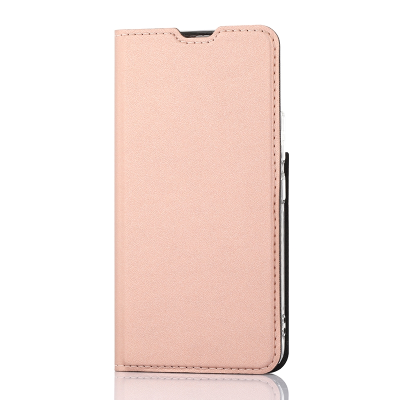 Wave Book Case ruusukultainen suojakotelo Samsung Galaxy S22 -puhelimelle. Magneettisulkuinen kansi, korttipaikat RFID-suojauksella ja läpinäkyvä muovikelkka (PC). Pintamateriaali laadukasta nahkaa.