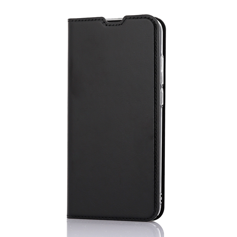 Wave Book Case musta suojakotelo Xiaomi Redmi Note 8T -puhelimelle. Magneettisulkuinen kansi, korttipaikat RFID-suojauksella ja läpinäkyvä muovikelkka (PC). Pintamateriaali laadukasta nahkaa.