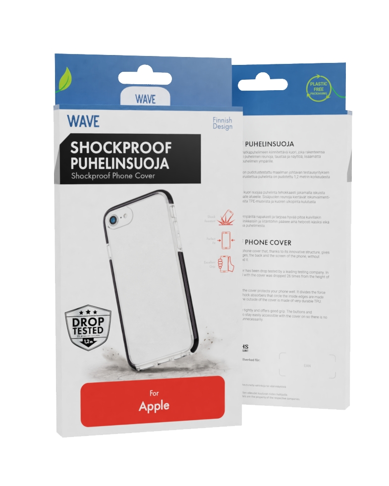 Wave Shockproof suoja on matkapuhelimeen kiinnitettävä kuori, joka rakenteensa ansiosta suojaa erinomaisesti puhelimen reunoja, taustaa ja näyttöä, lisäämättä kuitenkaan paljoa paksuutta puhelimen ympärille.