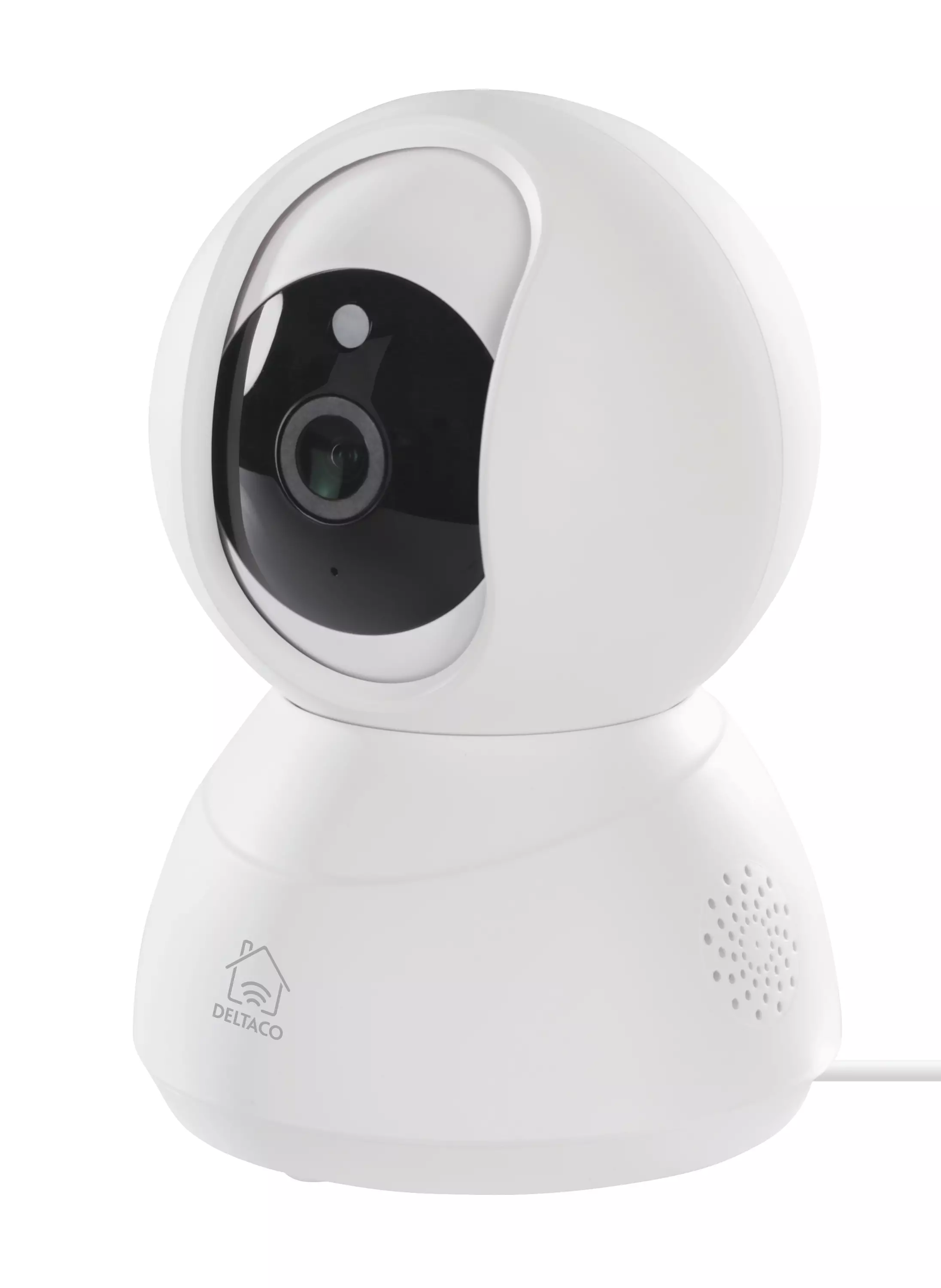 Deltaco Smart Home PTZ-verkkokamera sisäkäyttöön, 720p, Wi-Fi, 2,4 GHz, 10 m infrapunakuvaus, 1/4" CMOS-kenno, microSD-muistikorttipaikka, valkoinen.