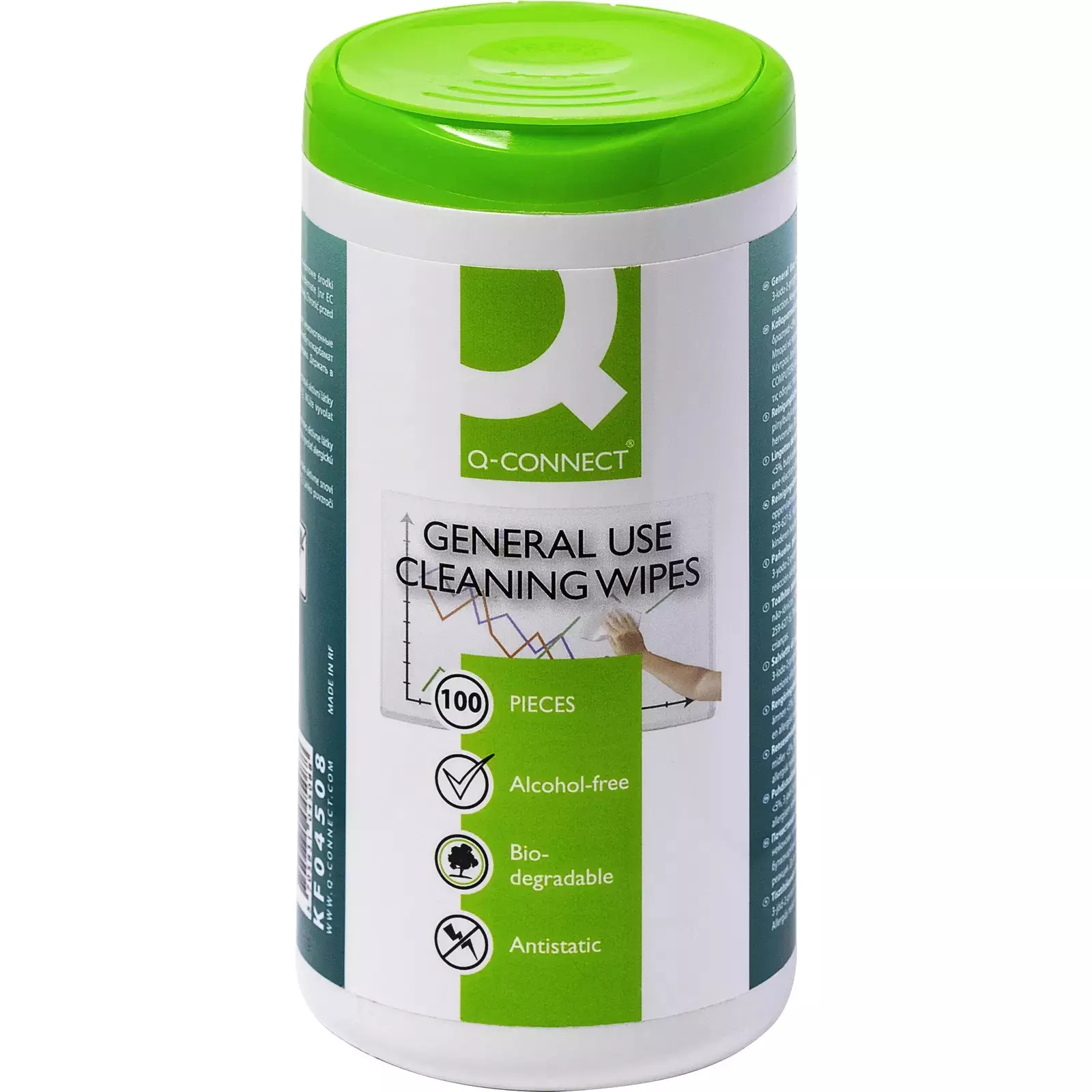 Q-Connect KF04508 yleispuhdistuspyyhkeet puhelimen ja erilaisten pintojen puhdistukseen. Tehokas puhdistaja kolibakteeria, salmonellaa, MRSA:ta, influenssavirusta ja muita yleisiä bakteereita vastaan. Puhdistusliina poistaa tehokkaasti sormenjäljet, rasvan ja pinttyneen lian. Liinan koko 145 x 130 mm. Alkoholiton ja antistaattinen. Yhdessä pakkauksessa 100 kpl yleispuhdistuspyyhkeitä.