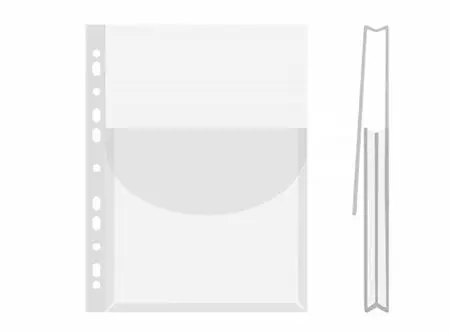 Kirkas paljetasku A4, läpällä. Läpinäkyvää PP-muovia. Ylhäältä auki. Yleisrei'itys. Kapasiteetti 200 arkkia (80 g/m2). Vahvuus 180 mikronia.