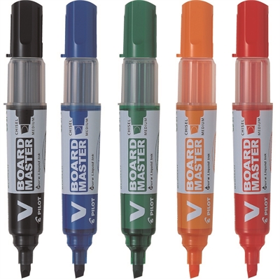 Pilot BeGreen V Board Master viistokärkinen viiden värin taulutussisarja. Pilot BeGreen on muovirunkoinen taulutussi, johon on saatavilla vaihtosäiliöt. Alkoholipohjainen muste. Ei sisällä ksyleeniä. Viisto akryylikärki, viivan leveydet 3,0 - 6,0 mm. Värit sininen, punainen, musta, vihreä ja oranssi. Valmistettu uusiomuovista. Kierrätysprosentti 92 %.