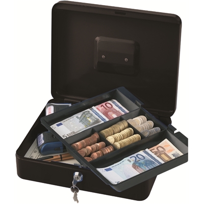 Q-Connect KF02604 kassalipas käteisen rahan säilytykseen. - Mitat: 330 x 235 x 90 mm - Materiaali terästä - Kantokahva - Kassalippaan sisällä muovinen lokerikko kolikoita varten - 2 avainta -... Lue lisää