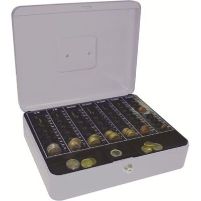 Q-Connectin hopea kassalipas, jonka mitat ovat 300 x 240 x 90 mm. - Materiaali terästä - Kantokahva - Kassalippaan sisällä muovinen lokerikko kolikoita varten - Lippaassa tarjotin eurokolikoille -... Lue lisää