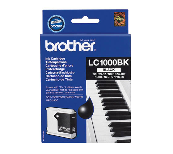 Alkuperäinen Brother LC1000BK musta väripatruuna. Riittoisuus n. 500 sivua 5 % peitolla.
