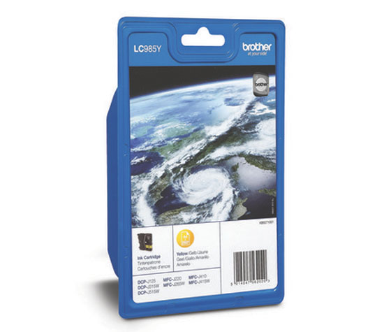 Alkuperäinen Brother LC-985 yellow / keltainen väripatruuna. Riittoisuus n. 260 sivua (kesto mitattu ISO/IEC 24711).