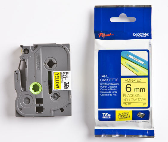 Musta teksti keltaisella taustalla. Leveys 6mm ja pituus 8m.