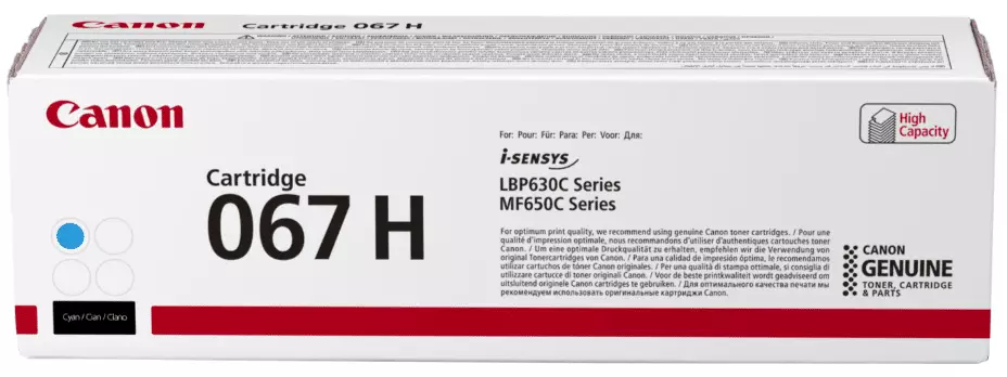 Alkuperäinen Canon 067 H cyan / syaani laservärikasetti. Riittoisuus jopa 2350 sivua.