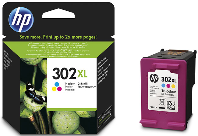 Alkuperäinen riittoisa HP 302XL mustekasetti (syaani, magenta, keltainen) monille HP-mustesuihkutulostimille. Noin 330 sivun tulostukseen.