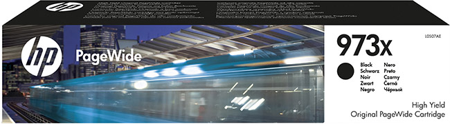 Alkuperäinen HP 973X musta väripatruuna PageWide-tulostimiin. Riittoisuus jopa 10000 sivua.
