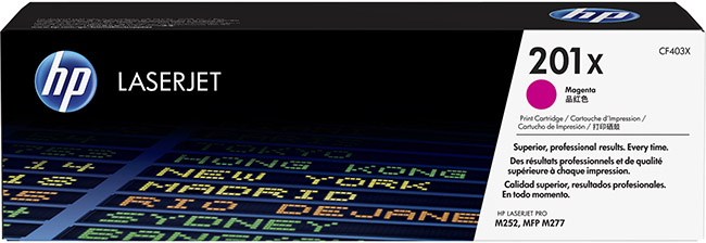 Alkuperäinen HP 201X CF403X magenta laservärikasetti. Käyttömäärä jopa 2 300 sivua.