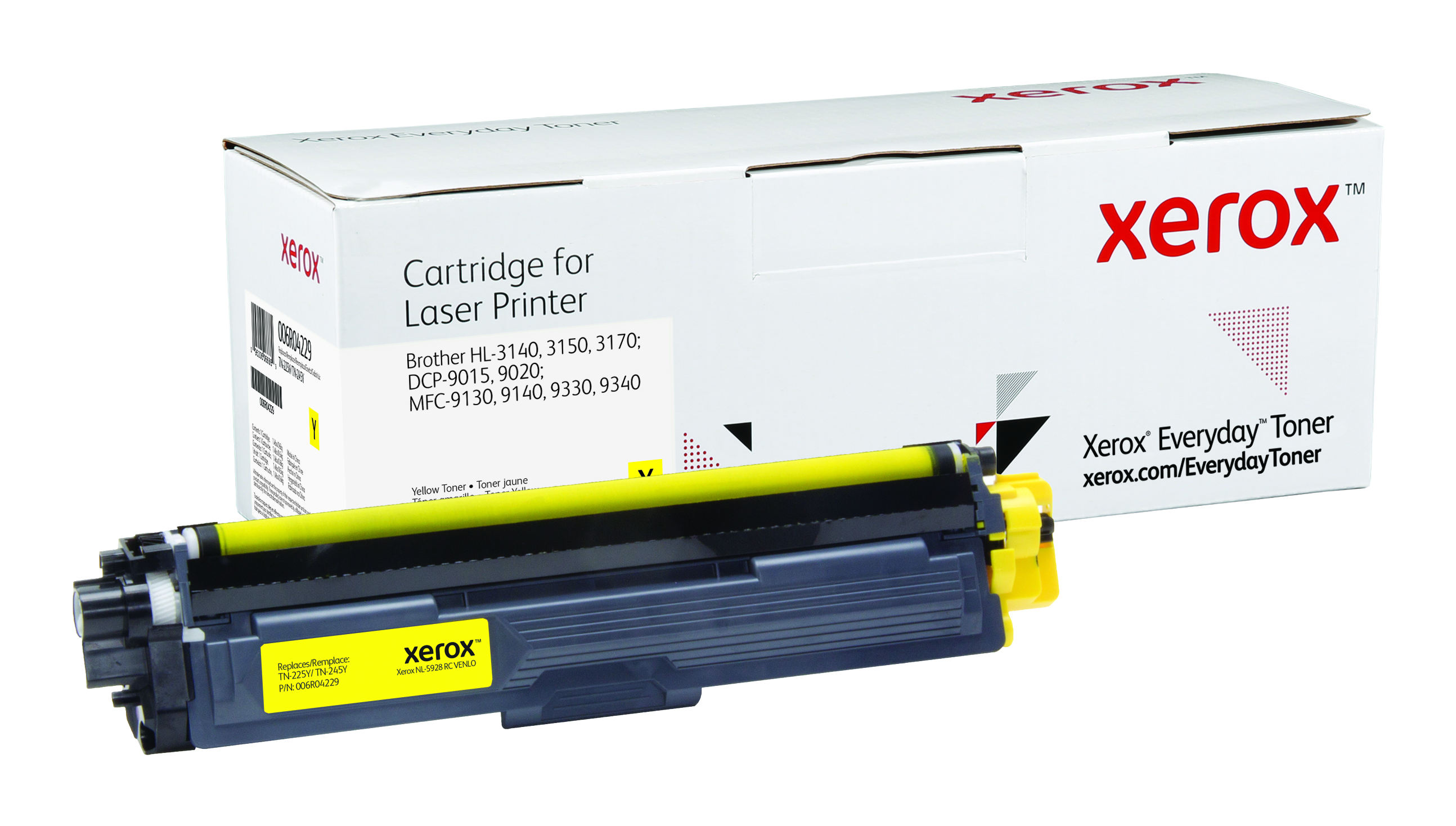 Xerox Everyday 006R04229 tarvikevärikasetti Xeroxilta, joka vastaa alkuperäistä Brother TN-225Y ja TN-245Y keltaista laservärikasettia. Riittoisuus jopa 2200 sivua.