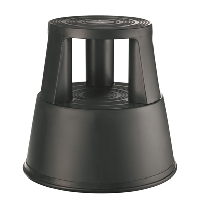 Q-Connect arkistojakkara / nousujakkara, musta. Alla kolme pyörää, jotka lukkiutuvat päälle astuttaessa. Polypropeenia, ruostumattomat metalli-osat. Kapasiteetti max 150 kg. Jakkaran korkeus 43 cm, alaosan halkaisija 45 cm ja seisontatason halkaisija 29 cm.
